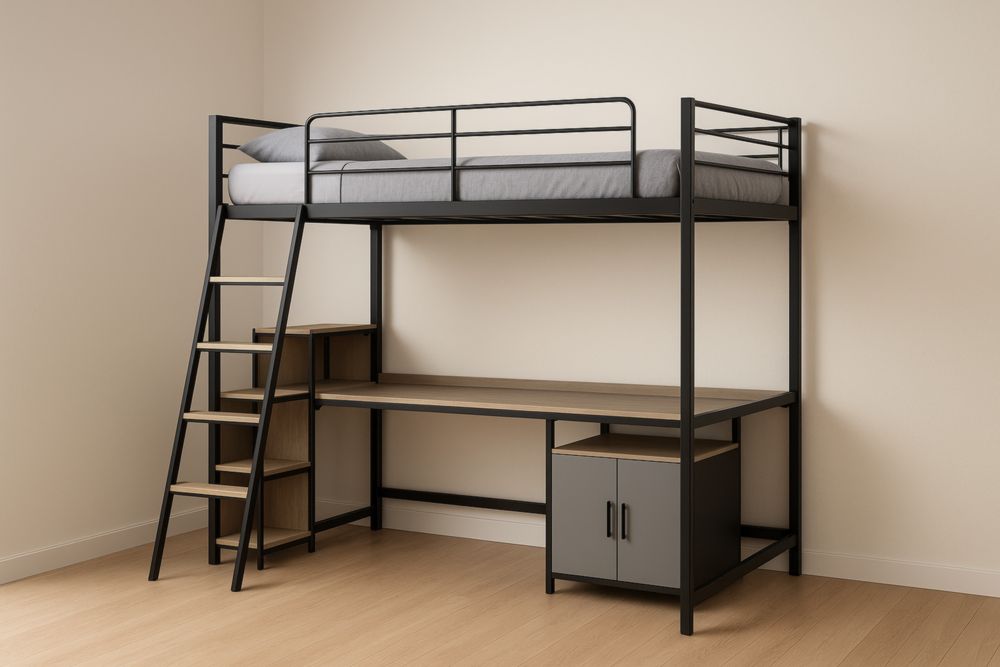 Letto a Soppalco con Scrivania in Metallo Nero e Legno Composito