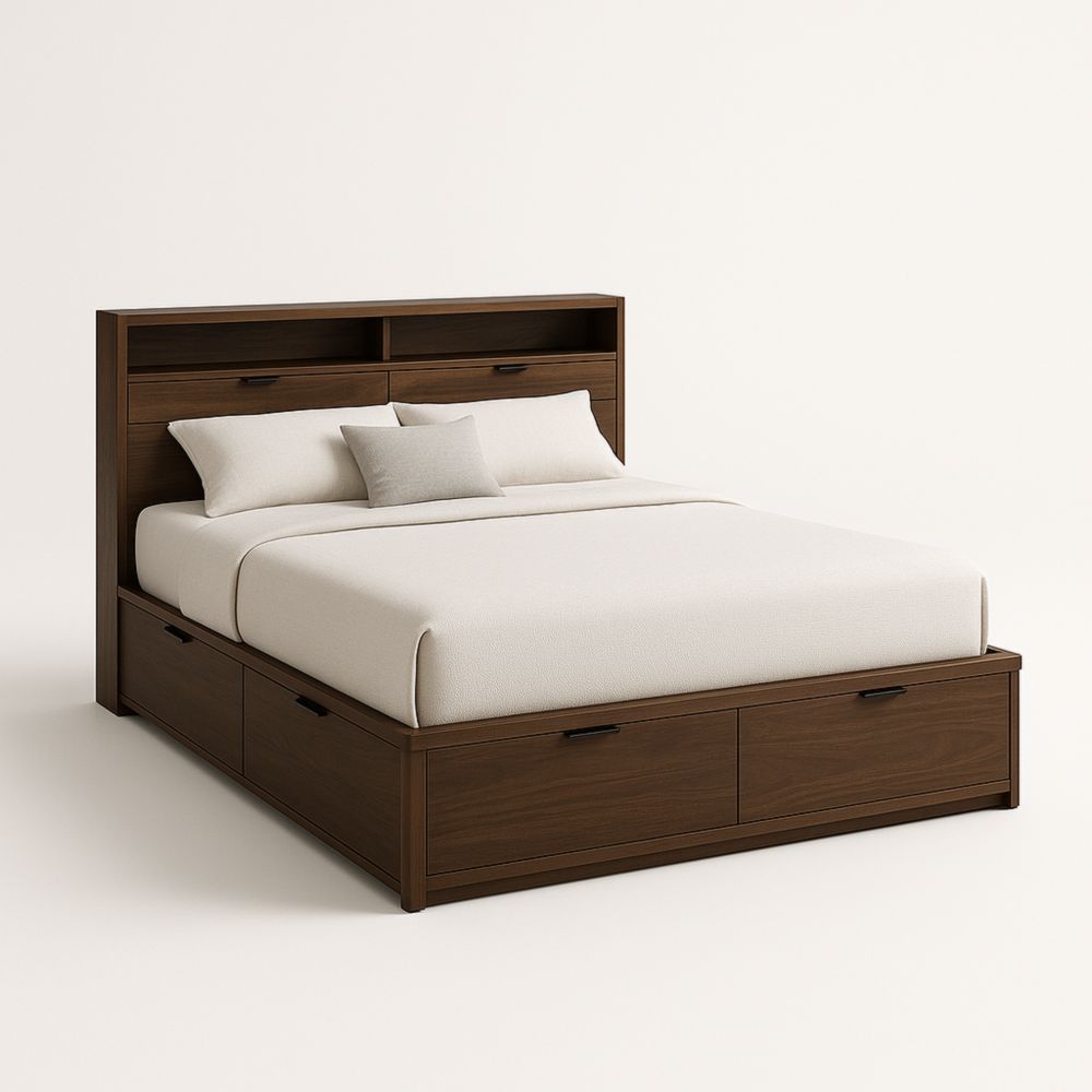 Letto matrimoniale in legno marrone con cassetti dimensioni 200x160x110 cm