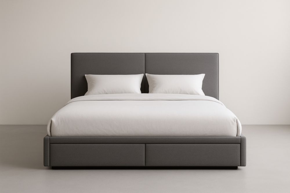 Letto matrimoniale in legno massello e tessuto poliestere 200x180×120 cm Grigio