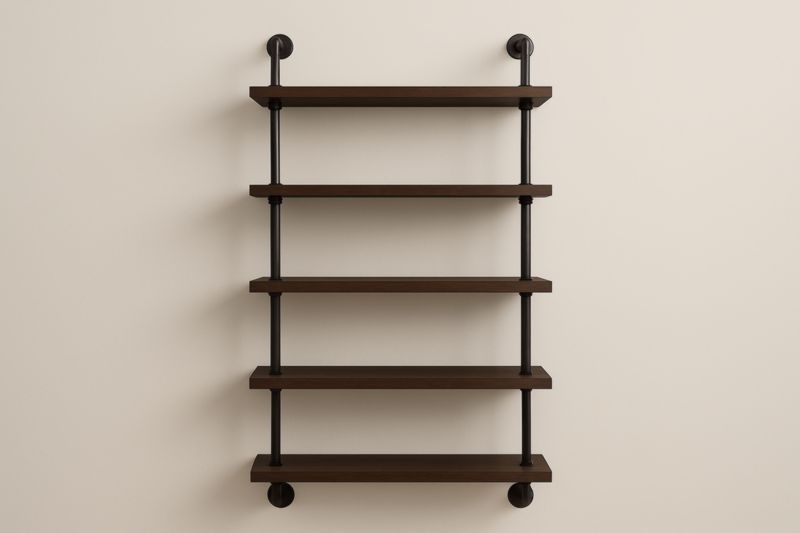 Scaffale a Parete in Legno Massiccio e Acciaio Marrone e Nero con 5 Ripiani